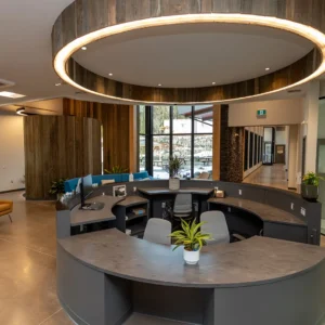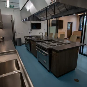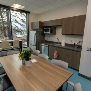 The Foundry is a wood-framed facility designed to provide a safe and supportive environment for youth. It will offer essential services including medical, mental health services and life skills. Notable features of this building include exposed structural glulam beams, an enhanced HVAC system to accommodate smudging, and a fully equiped teaching kitchen.